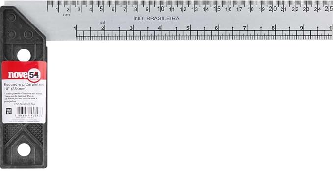O Esquadro para Carpinteiro 10” Nove54 é ideal para medições e marcações precisas em trabalhos de carpintaria, marcenaria e construção civil. Possui corpo resistente e cabo plástico que garante melhor firmeza e conforto no manuseio.