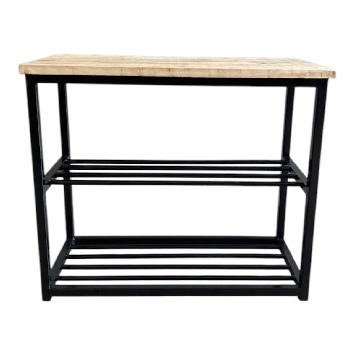 Sapateira industrial com design rústico e moderno! Estrutura em metal preto resistente com duas prateleiras de metal. Tampo em madeira. 0,30x0,50x0,60